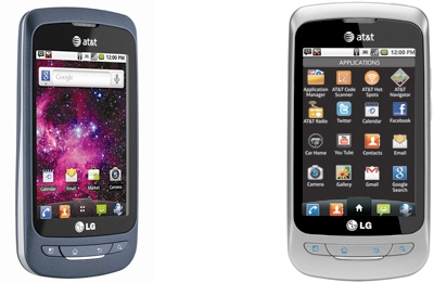 Via a press release today, AT&T announced that it will be offering two, Android-based LG handsets in both the prepaid and postpaid variety. The postpaid Phoenix and prepaid Thrive both sport a 600MHz processor, 3.2-inch touchscreen display, Wi-Fi, Bluetooth, aGPS, 3.2 megapixel rear-facing camera, microSD card slot, and 7.2Mbps HSDPA radio. Both smartphones, which run Froyo (Android 2.2) will be available on April 17th with the Phoenix retailing for $49.99 with a signed two-year agreement and the Thrive retailing for $179.99 contract-free. Prepaid customs that purchase a Thrive must sign-up for one of three new, prepaid data-plan offerings also announced: $25 for 500MB, $15 for 100MB, or $5 for 10MB. The full press release is after the break.